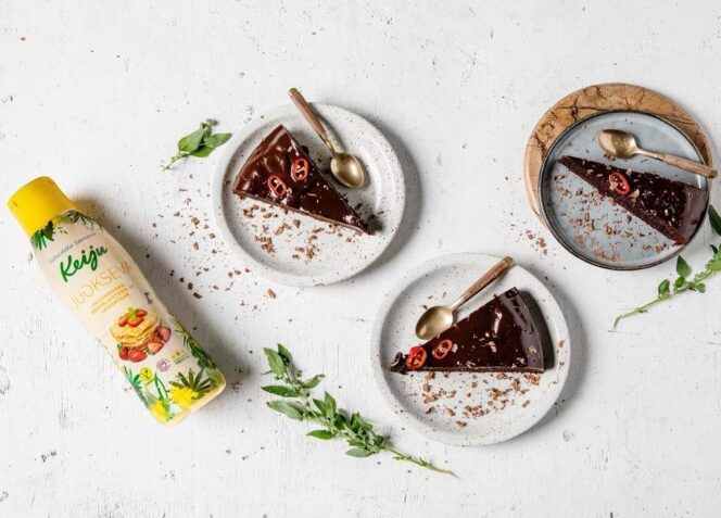 Chilinen suklaakakku on hyvä vaihtoehto normaalin suklaisen kakun tilalle. Hienostunut polte toimii tumman suklaan kanssa loistavana makuparina. Sekä kakku että kuorrute valmistuvat kätevästi Keiju Juoksevasta.