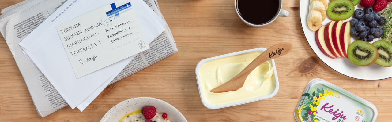 Kehitämme, valmistamme ja markkinoimme terveellisiä ja terveyttä edistäviä, laadukkaita ja hyvänmakuisia kasvipohjaisia margariineja, levitteitä ja kasviöljyjä niin kotikokeille kuin ammattilaisillekin – vastuullisesti ja turvallisesti. Meillä on yli 60 vuoden kokemus suomalaisesta margariininvalmistuksesta. Pitkät perinteet takaavat vahvan osaamisen tuotekehityksessä ja sen, että voimme jatkossakin tarjota asiakkaillemme Suomessa tuotettua margariinia.